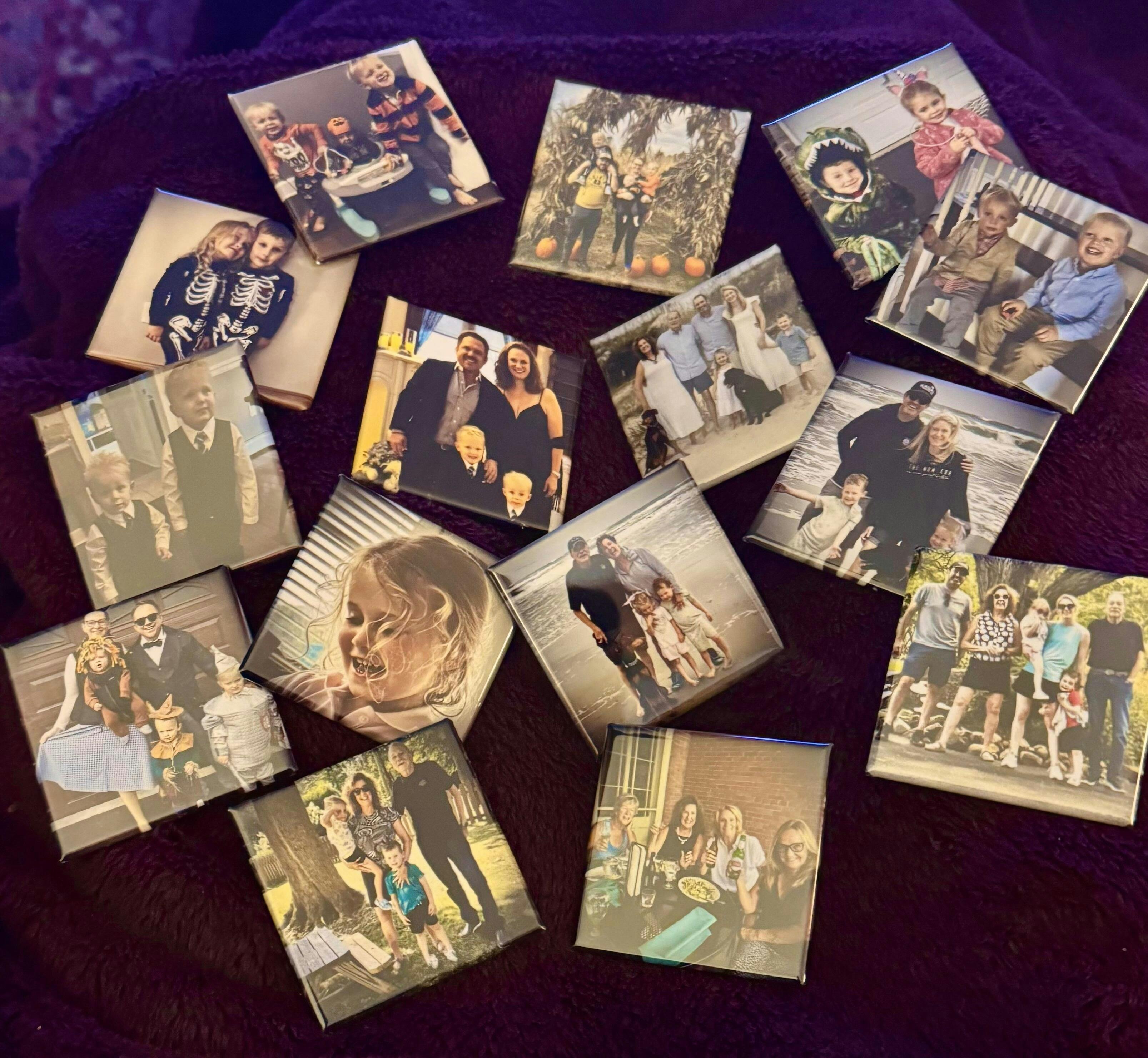 Turn your most cherished memories into high-quality, handcrafted magnets. Whether it's a sweet smile, a silly moment, or a snapshot that makes your heart burst, we transform your photos into 2"x2" keepsakes that stick around - literally.